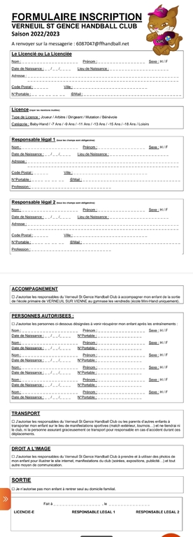 Formulaire Inscription 2024/2025